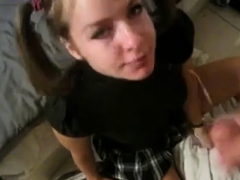 Amateur facial cumshot on teen blonde face