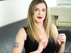 Hot busty masturbating shemale toys her ass
