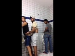 Wild threeway dick train in the backroom