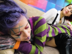 Alt punk girls Anuskatzz and Eden share a tattooed cock